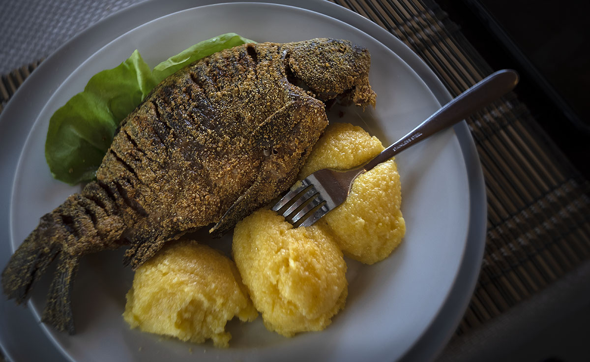 Carasul prăjit … pfoaiii, e bine să te asiguri că e mic, mic altfel mănânci la el o săptămână. Cu mămăligă, să fie clar. Dacă te ține pântecul adaugi un tiramisu și o cafea.