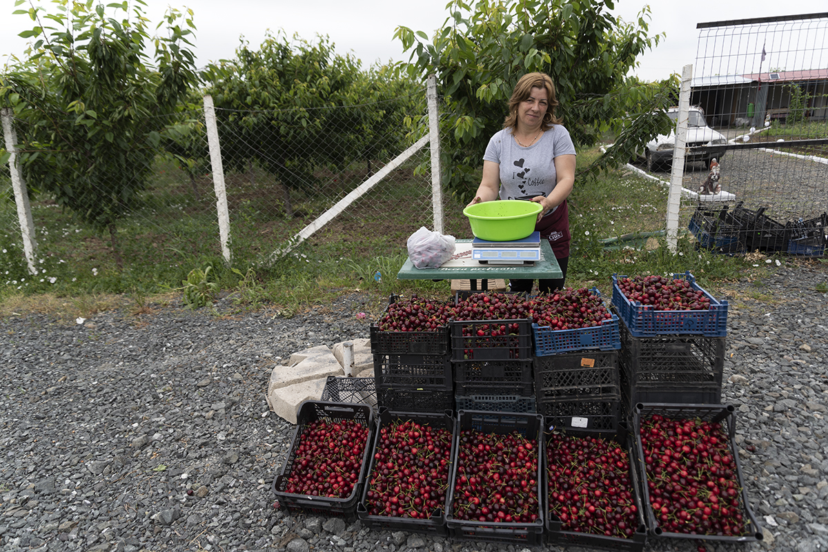 cum mergi către Tulcea e o livadă. După cum e norocul sezonului dai peste cineva la poartă care îți vinde fructe. Am prins sezonul cireșelor. Am abuzat de ora matinală și am cerut să fac câteva fotografii în livadă. Abia așteptam să aud de la poartă: puteți mânca cireșe direct din copac!! Plec mai departe cu două kile de fructe roșii în brațe. Să am la drum !