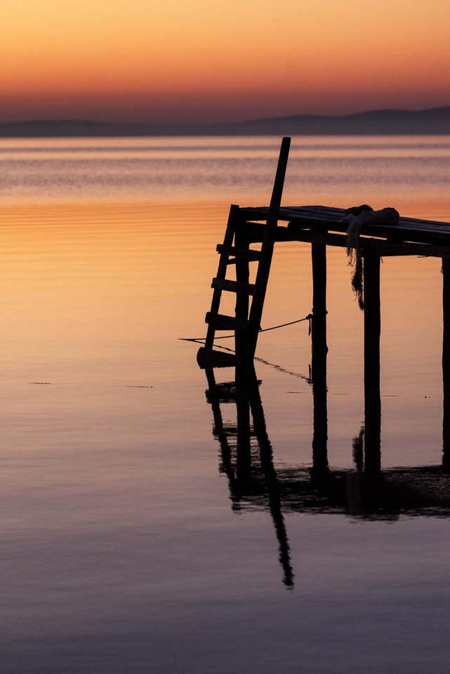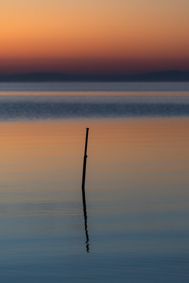 cerul capătă nuanțe de mov indigo, adică soarele bagă viteză să vină la întâlnirea cu lacul. E semn să sincronizez planurile noi cu răsăritul, ca și cum din șifonier, haina nouă mă trage de mână. Deschid geamul, afară nu-i chiar atât de frig și cobor. Doi metri mai încolo oprește o altă mașină din care coboară șase picioare și un trepied. Aglomerație mare la început de an. Nostimă treabă, ne și cunoaștem. Mai trec câteva minute și altă mașină parchează. Alte patru picioare și un trepid se îndreaptă spre lac. Cam mulți fotografi pe mp.