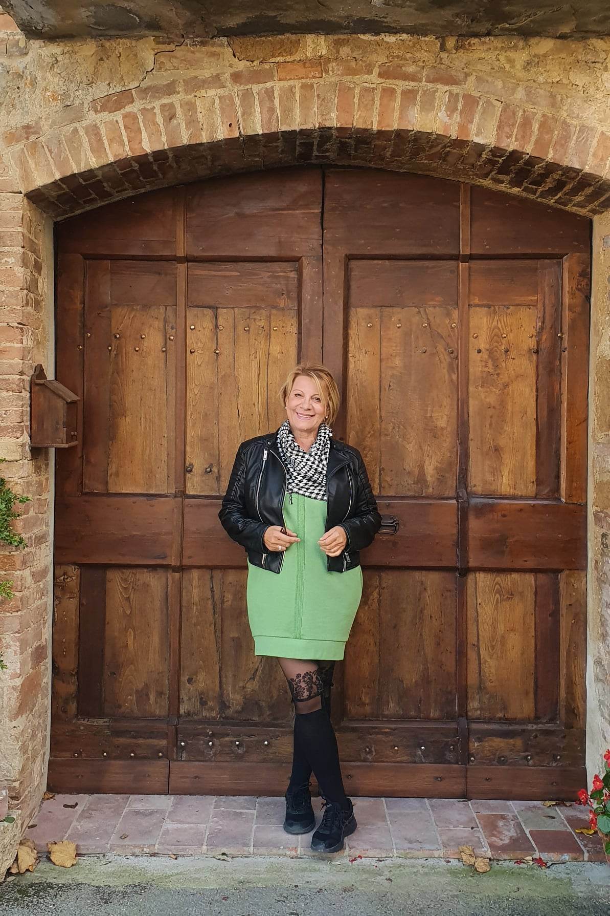 Într-una din zile ieșeam pe ușa clădirii în care aveam cazarea. Am dat cu ochii de-o doamnă frumos îmbrăcată. Era doar cu spatele. Trecuse de mine razant fără să apuc să-i văd fața. Avea în mers ceva tineresc, ceva vesel și ușor săltat, astfel încât ridicând ochii spre silueta ei nu i-ai fi dat mai mult de 45 de ani. Un păr ușor grizonat, tuns frumos la ceafă, iar hainele de pe ea, oh, hainele, celebrele case de modă ar fi fost invidioase pe ea.