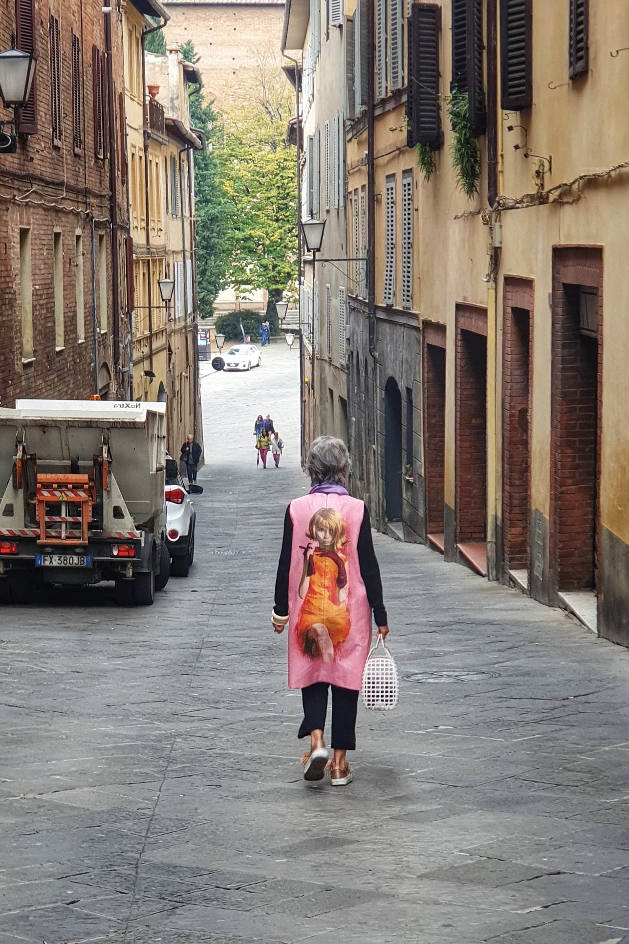 Cât am tras un cadru de la spate să-i prind ținuta trendy-flendy, doamna a făcut o piruetă la stânga ca și cum ar fi uitat ceva și-a pornit către mine. Să scap camera și alta nu, când am văzut că doamna-n roz era trecută de 80 de ani. Așa ceva? M-am blocat și nu am apucat să-i fac poza.
