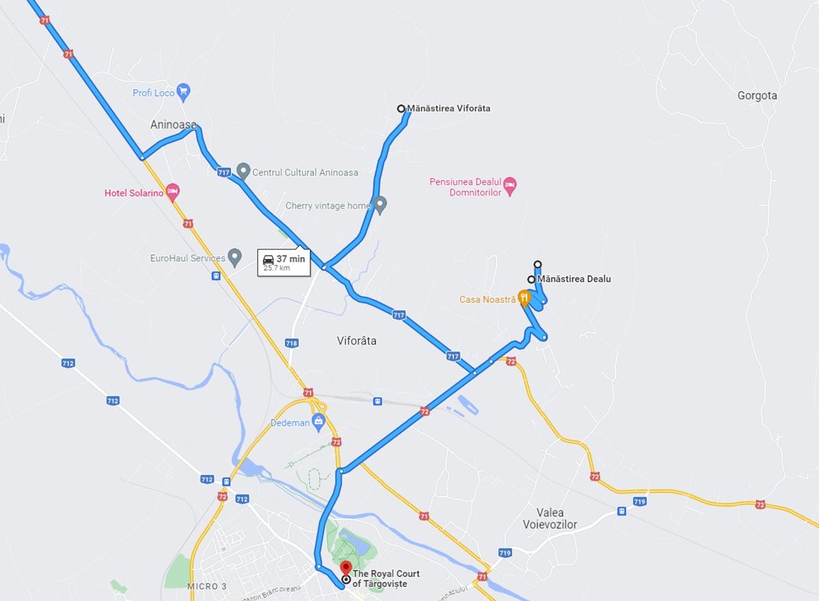 Dacă ai răbdare, mai sus de mănăstire, dai de Asociația Militarilor Veterani, unde mi-am băgat puțin nasul. Și bine am făcut că așa l-am cunoscut pe cel care avea să-mi fie o minunată sursă de informații. Mi-a fost ghid pentru Biserica Dealu Mare și apoi a doua zi pentru Curtea Domnească. Am dorința să-i mulțumesc aici încă o dată domnului Constantin Cristea pentru toată răbdarea de care a dat dovadă să-mi povestească cu răbdare, că așa se dă „doamnei de la ziar”.
