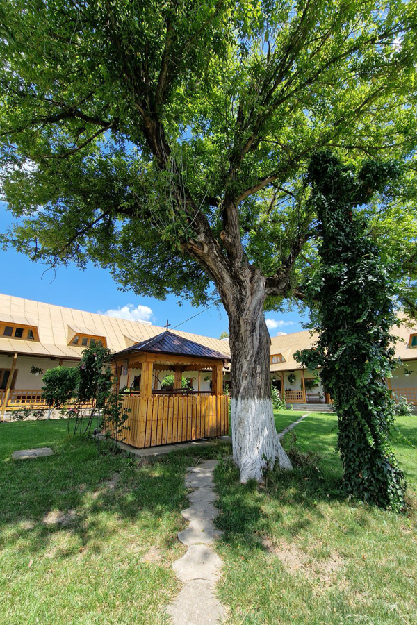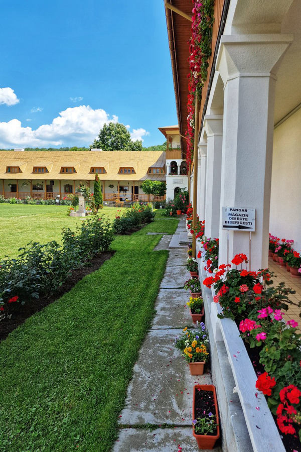 În jurul bisericii, pe alei pavate, poți face o plimbare relaxantă prin grădina mănăstirii. Vei găsi arbori bătrâni, flori delicate și plante medicinale. Aerul curat și liniștea locului îți încarcă sufletul cu o pace interioară caldă.