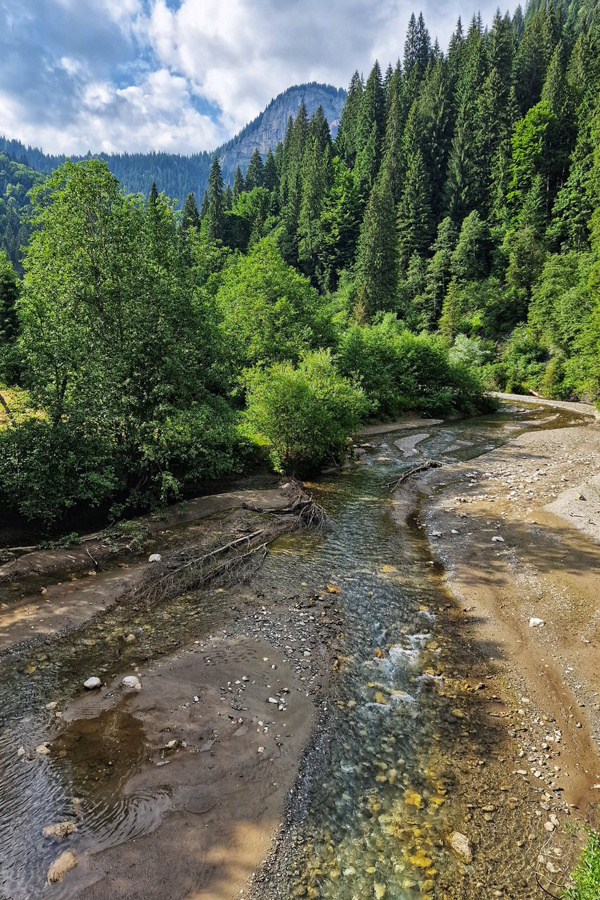 Cheile Orzei, te ademenesc să te strecori pe drumul care șerpuieste domol. Nu am înaintat, soarele începea să dispară și am preferat să facem drumul de întoarcere pe lumină. Undeva pe drum poți opri să admiri cariera de piatră care se vede prin fereastra naturală creată de brazi.