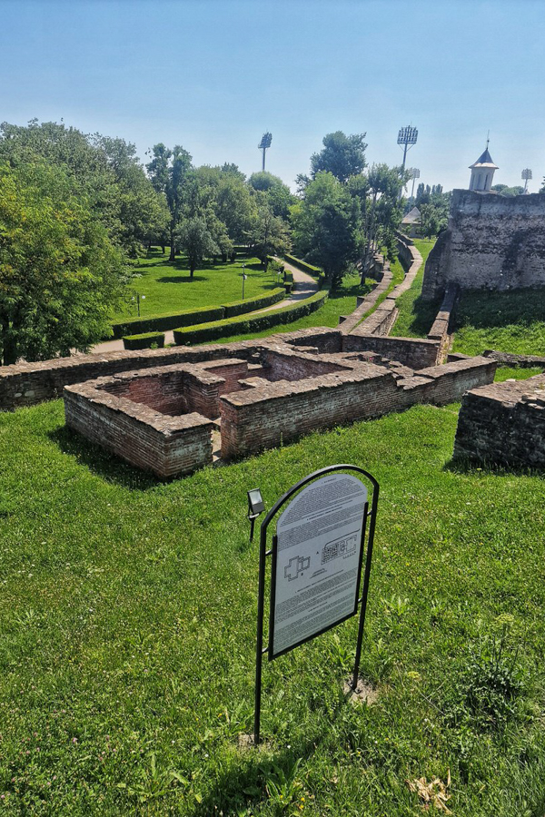 - Fortificațiile Curții Domnești: șanțul de apărare, în formă de potcoavă, având o adâncime de 4,7 metri, zidul interior având o grosime de 1,2-1,4 metri construit din piatră și cărămidă, zidul exterior construit la 2,5 metri de cel interior tot din cărămidă
